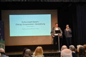 Im Theater am Steg fand auf Einladung von Kulturstadtrat Michael Capek erneut ein Austausch mit Kulturschaffenden Badens statt. Gemeinsam mit der Leiterin der Geschäftsgruppe Kultur, Ulrike Scholda, präsentierte er die kürzlich fertiggestellte Kulturkonzeption.