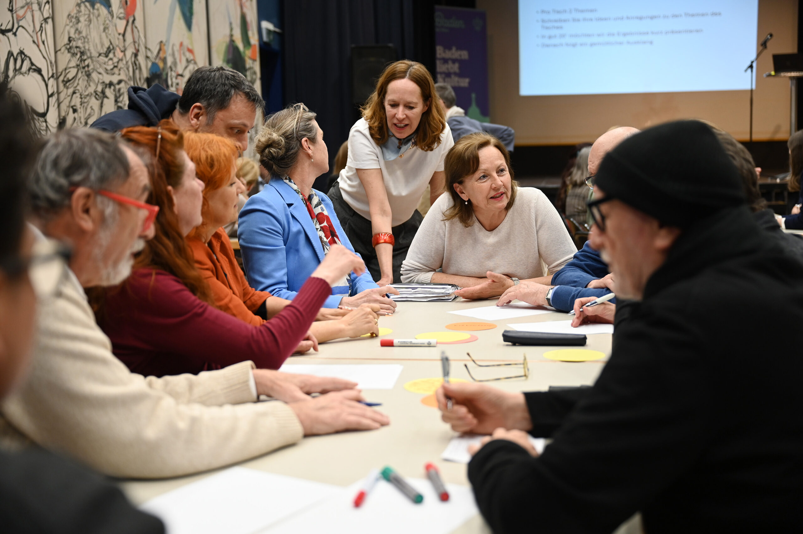 Unter engagierter Teilnahme zahlreicher Badener Kulturschaffender wurden Meinungen zu anstehenden Themen wie Kulturbeirat, Förderrichtlinien, Kurkonzerten, Kulturpreis, Kommunikation und Kulturvermittlung in Kleingruppen eingeholt. Nach Präsentation der Ergebnisse wurden die angeregten Gespräche im Foyer des Theaters fortgesetzt – unterstützt vom Buffet der Lebenshilfe NÖ.